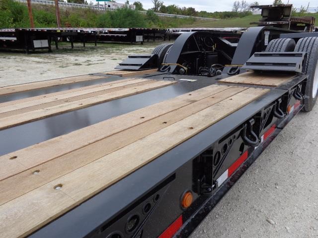 For Rent-Low deck 55 ton hydraulic RGN 18” loaded deck height detachable RGN tridem! 53 x 102 Non-ground bearing design, all steel construction with 2” Apitong floor, set up for a 4rd axle flip, 11’ 11” gooseneck with 102” swing radius, 26’ well, 18” loaded deck height with 6” of ground clearance, ratchet style hydraulic neck with a Honda pony motor 5 ride height positions, includes swing out outriggers, tri-axle air ride suspension (54.5” axle spacing) set up for a 4rd axle flip, 3rd axle has an air lift and the first axle has a shut off style air lift so you can lift the first and third axles, LED lights, LP 22.5 on steel wheels, raise/lower valve, air gage, (14) pair of D-rings, flag holders, boom well. 26,021#’s