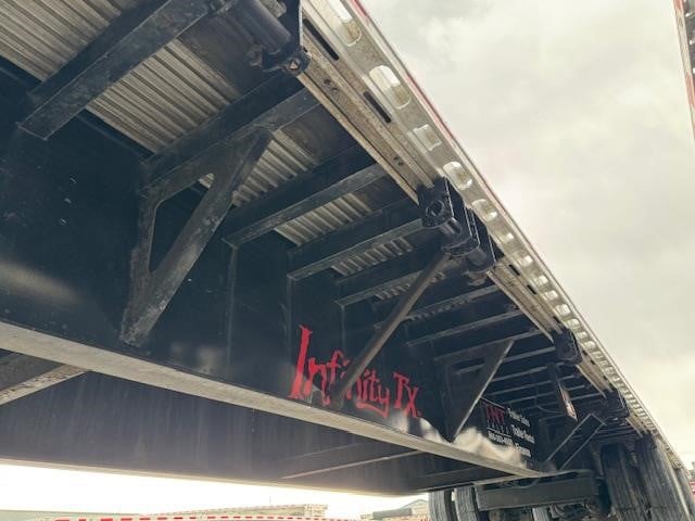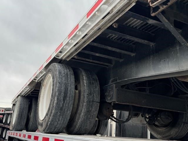 Fontaine Infinity 53’ x 102” Combination Drop Deck with Rear Axle Slide and Container Twist-Locks! Combination aluminum and steel construction, steel crossmembers on 12” centers on rear deck and 18” centers on front deck, aluminum sides, rear and floor with (4) wood nail strips. King Pin set at 18”. 122” spread in open position, California legal in closed position with electric rear axle dump and full manual suspension dump, Hendrickson AANL23K and AAZL23K buttoned-up Intraax air ride suspension with 4S2M ABS, spring brakes, grease hubs. LED lights (3) per side and (4) on rear. One-piece RASR (Routed Aluminum Side Rails), Coil package, (17) recessed pop-up chain ties, double L style winch track (12) sliding winches and hook retainers, retractable container locks to haul (1) 40’ container or (2) 20’ containers. 255/70R LP 22.5 tires with steel wheels. 80,000 lb. frame rating. Empty weight 12,027 lbs. +/- 3%.