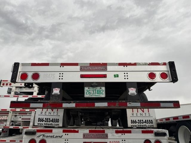 Fontaine Infinity 53’ x 102” Combination Drop Deck with Rear Axle Slide and Container Twist-Locks! Combination aluminum and steel construction, steel crossmembers on 12” centers on rear deck and 18” centers on front deck, aluminum sides, rear and floor with (4) wood nail strips. King Pin set at 18”. 122” spread in open position, California legal in closed position with electric rear axle dump and full manual suspension dump, Hendrickson AANL23K and AAZL23K buttoned-up Intraax air ride suspension with 4S2M ABS, spring brakes, grease hubs. LED lights (3) per side and (4) on rear. One-piece RASR (Routed Aluminum Side Rails), Coil package, (17) recessed pop-up chain ties, double L style winch track (12) sliding winches and hook retainers, retractable container locks to haul (1) 40’ container or (2) 20’ containers. 255/70R LP 22.5 tires with steel wheels. 80,000 lb. frame rating. Empty weight 12,027 lbs. +/- 3%.