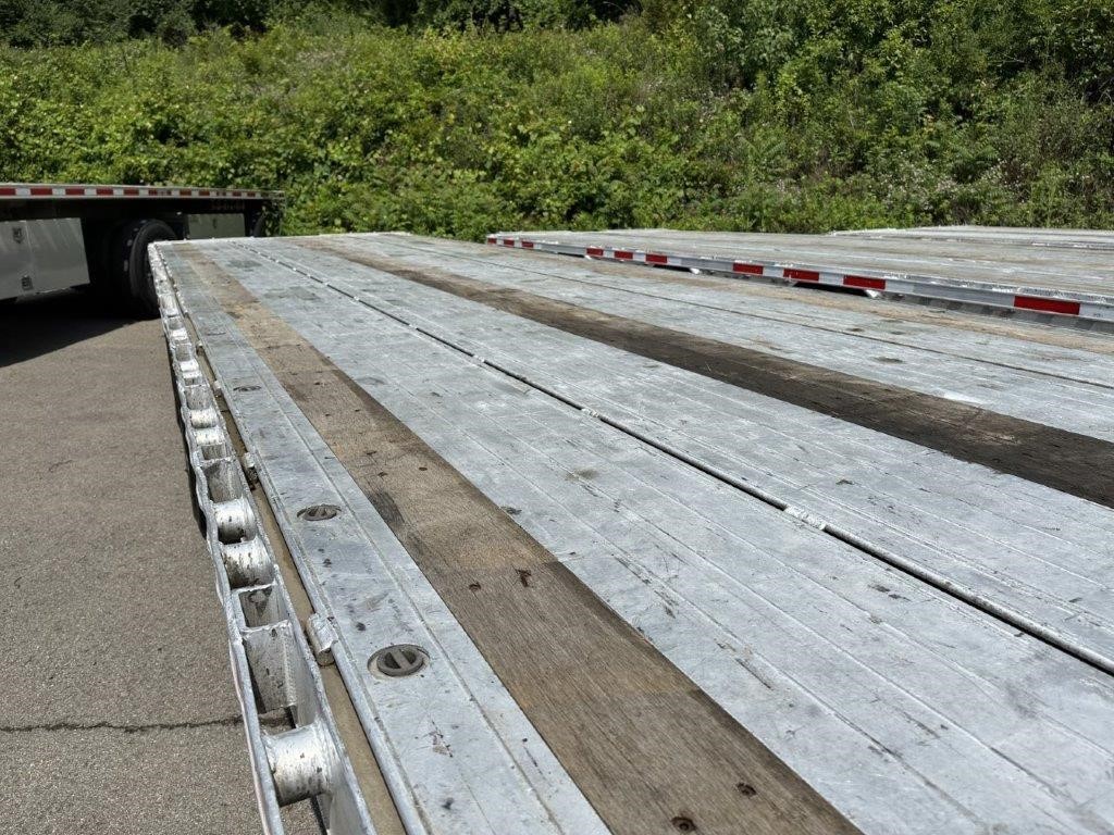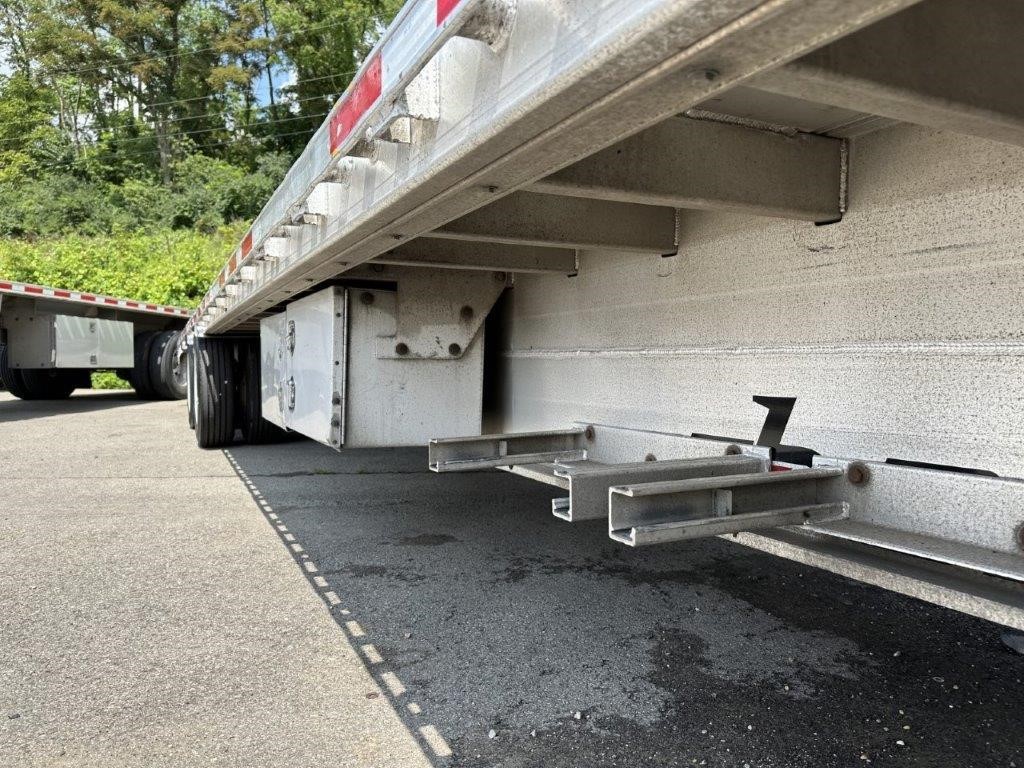 2016 Benson 53’ x 102” all aluminum drop deck! All aluminum construction including frame, front, rear, sides and floor with (3) Apitong nail strips, reinforced coil zone in floor rated for 52,000 lbs. in 4’ concentrated, widespread air ride with a California legal rear axle slide. 121” spread in open position and 60.5” spread in closed position. Suspension meets the 40’ inner bridge requirement when in the closed position. Winch track driver side with (18) sliding winches, aluminum lock-rite side rail with stake pockets with double spools, LED lights, (17) Pair Chain Tie Downs, (2) Toolboxes, LP 22.5 on outer aluminum wheels, Hendrickson AANL23K air ride suspension. Jost model A420 landing gear, 16” crossmember spacing.