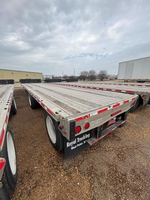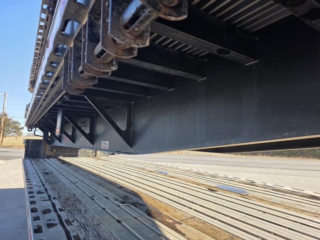 Used 2016 Fontaine Infinity 48’ x 102” Combination Drop Decks! Combination aluminum and steel construction, steel crossmembers on 18” centers at front deck and 12” centers at rear deck, aluminum sides, rear and floor with (4) wood nail strips. King Pin set at 18”. 122” widespread air ride set to rear with rear axle dump, Hendrickson AANL23K Intraax air ride suspension with 4S2M ABS, spring brakes, Hendrickson Semi synthetic grease hubs. LED lights (3) per side. One-piece RASR (Routed Aluminum Side Rails), coil package, (15) recessed pop-up chain ties, double L style aluminum winch track both sides, (12) sliding winches. 255/70R 22.5 LP tires on steel wheels. 80,000 lb. frame rating with 55,000 lbs. in 4’. Empty weight 10,495 lbs. +/- 3%.