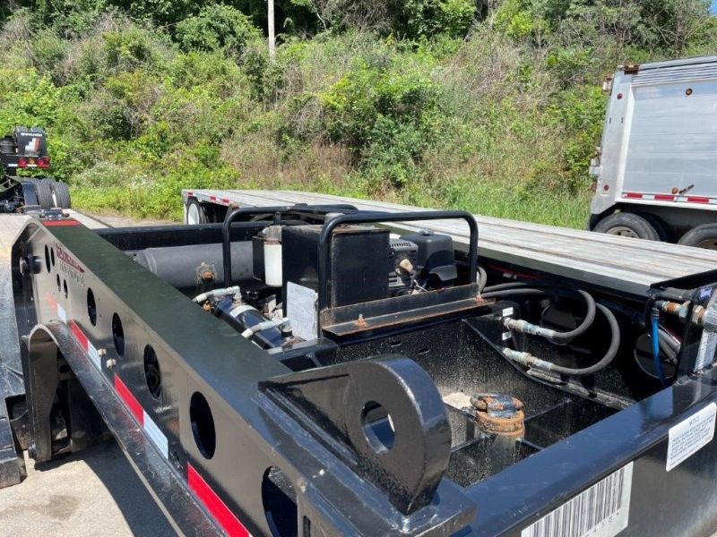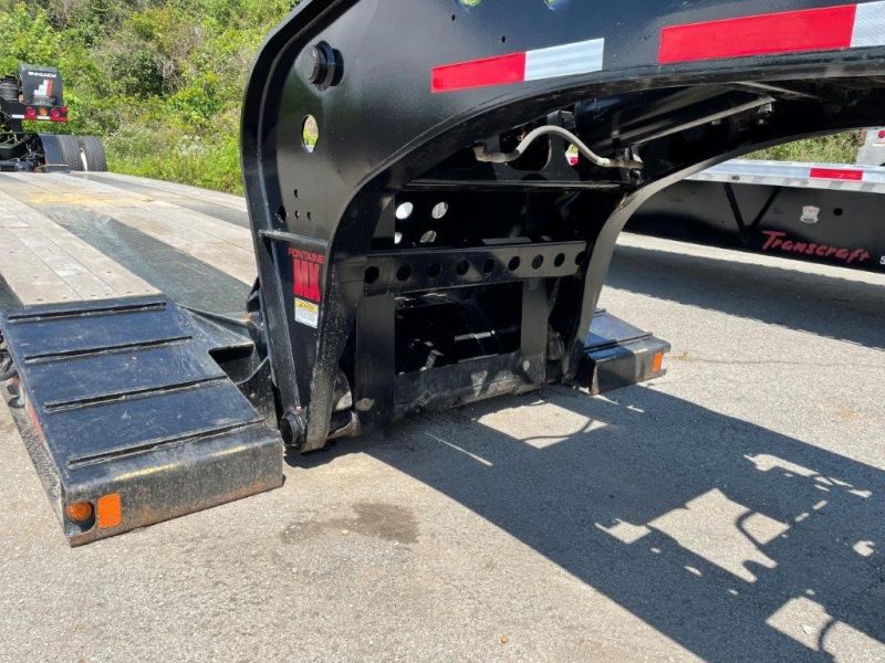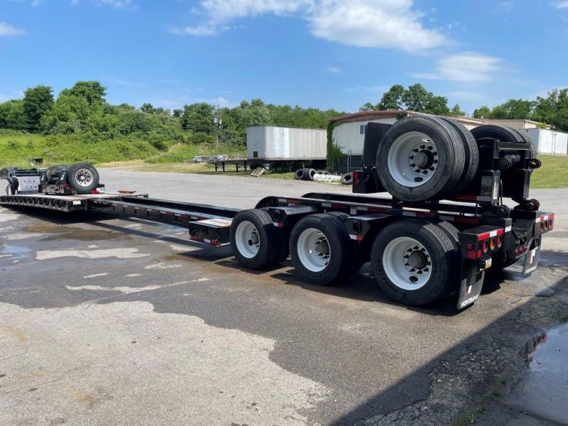 Used 2020 Fontaine 55 ton S-T-R-E-T-C-H hydraulic detachable RGN tridem! 55 x 102 stretches out to 76’ x 102” Non-ground bearing design, all steel construction with 2” Apitong floor, set up for a flip neck extension (aka flip box) as well as a 4th axle flip or stinger (run 4 in a row or a 3+1), 11’ 11” gooseneck with 102” swing radius without optional flip neck and 125” with optional flip neck, 29’-4″ well closed and up to 50’ in full open, 20” loaded deck height with 6” of ground clearance, ratchet style hydraulic neck with a Honda pony motor 5 ride height positions, includes (14) pair of swing out outriggers, (1) pair of drop in outriggers, modular design detachable bogie tri-axle air ride suspension (54.5” axle spacing), 3rd axle has an air lift and the first axle has a chain lift so you can lift the first and third axles, LED lights, strobes, low profile 275/70R 22.5 on steel wheels, raise/lower valve, air gauge, (12) pair of D-rings, flag holders, boom well. Rated for 110,000#’s in a 16’ span, 27,416#’s +/- 3%.