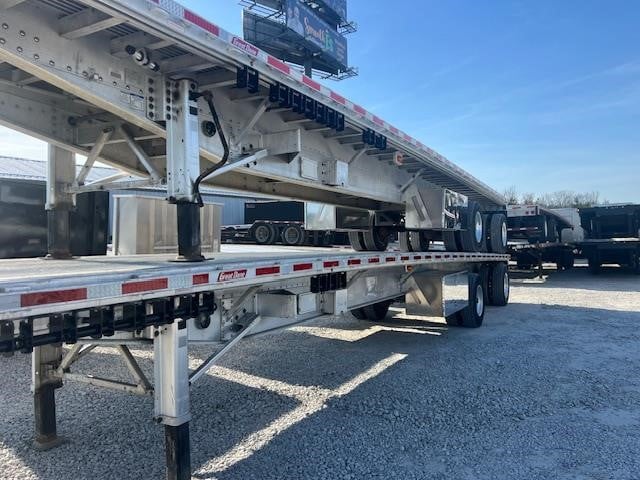 Used 2020 Great Dane Freedom 48’ x 102” Aluminum Flatbed! All aluminum construction including main beams, front, rear, sides, and safety grip aluminum floor with (2) wood nail strips. King pin set at 30”. 121” axle spacing, fixed spread, Hendrickson AANT23K air ride suspension with 2S1M ABS, electric dump valve, grease hubs. LED lights (5) per side and (3) per side on rear. Coil package, double “L” style aluminum winch track both sides with sliding winches. 22.5 tires on aluminum outside wheels, TIREMAAX PRO inflation system. Jost AX150 aluminum landing gear. FOB Villa Ridge MO, Belle Vernon PA, Houston TX.