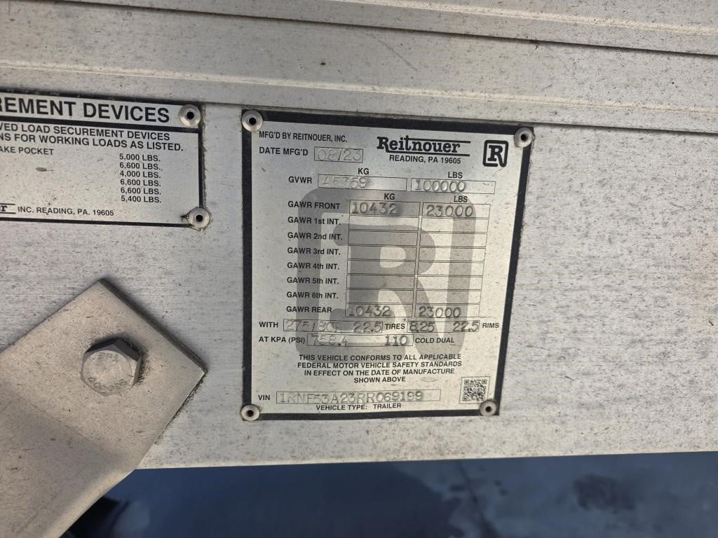 Sneak Peak! Newly arrived Lightly Used 2024 Reitnouer Big Bubba 53’ x 102” Aluminum Flatbed with Rear Sliding Axle! All aluminum construction, aluminum frame, sides, rear and floor with (3) wood nail strips, fully enclosed rear. California legal in closed position, Hendrickson air ride suspension. LED lights (11) per side, all clear lens lighting. Coil package, winch track both sides, (12) sliding winches, (4) rows j-hook track, (2) double door cam-lock boxes, enclosed Right Weigh digital load scale. LP 22.5 Michelin tires on aluminum outside wheels. This is a nice owner operator spec, lightly used and ready to work! FOB Villa Ridge MO.