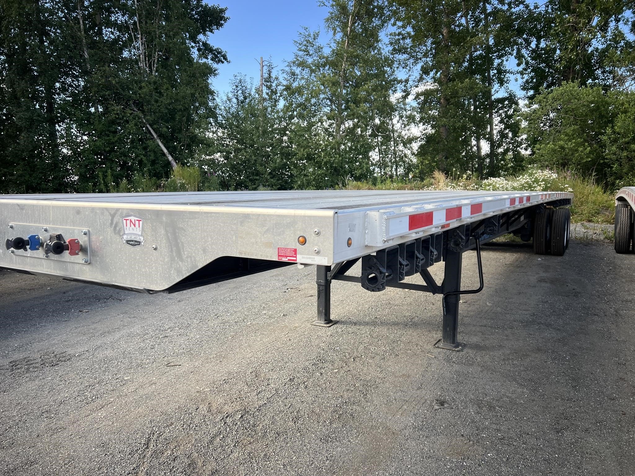 Wabash (Formerly Transcraft) 45’ x 102” Combination flatbed with Sliding Tandem! The trailer trusted for over 60 years as Transcraft now has a new name, Wabash! Combination aluminum and steel construction, 4” steel crossmembers on 12” centers, aluminum front, rear, and floor with (4) wood nail strips. King pin set at 30”. 49” closed sliding tandem axles, Hendrickson AANT23K air ride suspension with WABCO 2S1M ABS, semi-fluid grease bearings. LED lights, (3) per side on rear. Double L style winch track, sliding winches. 295/75R LP 22.5 tires on steel wheels. Jost A420 landing gear. FOB Anchorage, AL.