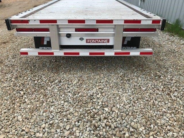 NEW Fontaine Revolution 53’ x 102” Aluminum Drop Deck with Rear Axle Slide! Aluminum construction of main beams on lower deck, aluminum front corners, rear, sides, and 3 1/8” aluminum floor with friction welds and (2) wood nail strips, galvanized steel neck and king pin area. 11’ upper deck with 42’ lower, king pin set at 30”. 122” spread in open position, California/Canada legal in closed position with electric rear axle dump and full manual suspension dump. Hendrickson air ride suspension with 4S2M ABS, drum brakes, Hendrickson HXL 5 semi-synthetic grease hubs with 5-year warranty. LED lights (5) per side and 3L-3-3L light pattern on rear, 4-way socket on rear for wide load/strobe connections. One-piece RASR (Routed Aluminum Side Rails), Coil package, (17) recessed pop up chain ties, double L style aluminum winch track both sides, (12) sliding winches and hook retainers, stake pockets on 24” centers, aluminum air tank. 255/70R LP 22.5 tires on outside aluminum wheels. Jost AX100G19 ALUMILIGHT landing gear. 80,000 lb. frame rating with 50,000 lbs. in 4’. Empty weight 11,180 lbs. +/- 3%. FOB Villa Ridge MO, Belle Vernon PA and Haleyville AL.