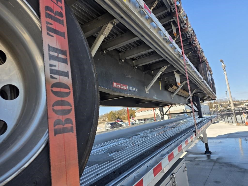Sneak Peak! Newly arrived Lightly Used 2025 Great Dane Freedom 48’ x 102” Combination Flatbed! Combination aluminum and steel construction, steel fronts and main beams, aluminum crossmembers, sides, rear and floor with wood nail strips. Widespread air ride suspension. All LED lights. Coil package, winch track both sides, (10) sliding winches, (1) box per side located between spread. LP 22.5 tires on (8) aluminum wheels with Hendrickson tire inflation. FOB Villa Ridge, MO.