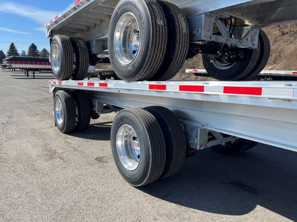 NEW Wabash (Formerly Benson) 48’ x 102” Aluminum Flatbed! The trailer trusted for over 60 years as Benson now has a new name, Wabash! Aluminum construction, aluminum crossmembers on 16” centers, aluminum front, rear and floor with (3) Apitong wood nail strips. Galvanized coupler, king pin set at 30”. 121” spread axle spacing with galvanized hangers, Hendrickson AAT23K air ride suspension with WABCO 2S1M ABS, semi-fluid grease bearings, Hendrickson 5-year warranty. LED lights (5) series 33 with TruckLite harness per side, (3) per side on rear. Coil package, Lock-Rite side rail with stake pockets on 24” centers, double pipe spools, double L style winch track both sides, (12) sliding winches, aluminum air tank. 295/75R 22.5 LP tires on aluminum outside and steel inside wheels. Jost AX150 ALUMILIGHT galvanized landing gear. 80,000 lb. GVWR with 52,000 lbs. in 4’ beam rating. Empty weight 8,831 lbs. +/- 3%. FOB Villa Ridge MO, Belle Vernon PA and Cadiz KY.