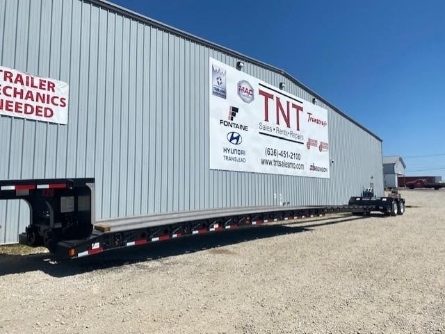 NEW Fontaine Renegade 40-Ton Mechanical Double-Drop S-T-R-E-T-C-H RGN with EXTENDED WELL! 53’ x 102”, Non-ground bearing design, all steel construction with 1-3/8” Apitong floor on 24” crossmember spacing, set up for a flip neck extension (aka flip box) as well as a 3rd axle flip, 81” swing radius without optional flip neck and 117” with optional flip neck, 34’ TO 60’ well with 34’ clear when closed and 60’ clear when extended, 20” loaded deck height with 6” of ground clearance, double doughnut for two fifth wheel height settings (50” and 52”), (14) pair of swing out outriggers, (9) pair of D-rings, tandem air ride suspension (54.5” axle spacing) set up for a 3rd axle flip, CHAIN LIFT ON THE FRONT AXLE IS INCLUDED, LED lights, amber strobes, LP 22.5 on steel wheels, raise/lower valve, (5) pair of D-rings. Rated for 80,000#’s in a 16’ span, 23,890#’s +/- 3% FOB Villa Ridge MO, Belle Vernon PA and Springville AL.