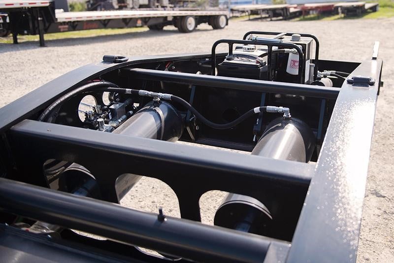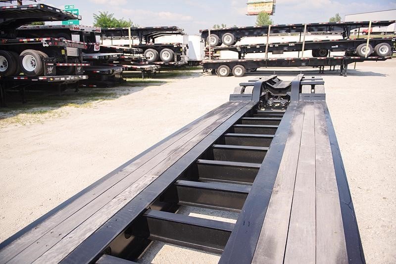 NEW Fontaine 55 ton hydraulic detachable RGN tridem! 53 x 102 Non-ground bearing design, all steel construction with 2” Apitong floor, set up for a flip neck extension (aka flip box) as well as a 4th axle flip or stinger (run 4 in a row or a 3+1), 11’ 11” gooseneck with 102” swing radius without optional flip neck and 125” with optional flip neck, 26’ well, 22” loaded deck height with 6” of ground clearance, ratchet style hydraulic neck with a Honda pony motor 5 ride height positions, includes (14) pair of swing out outriggers, (1) pair of drop in outriggers, tri-axle air ride suspension (54.5” axle spacing), 3rd axle has an air lift and the first axle has a chain lift so you can lift the first and third axles, LED lights, strobes, low profile 275/70R 22.5 on steel wheels, raise/lower valve, air gauge, (12) pair of D-rings, flag holders, boom well. Rated for 110,000#’s in a 16’ span. 22,664#’s +/-3% FOB Villa Ridge MO, KC MO and Springville AL