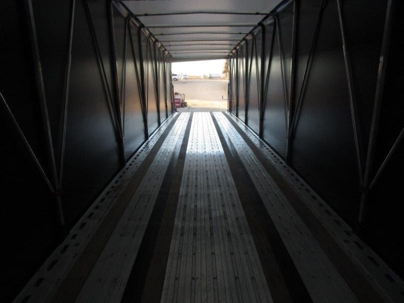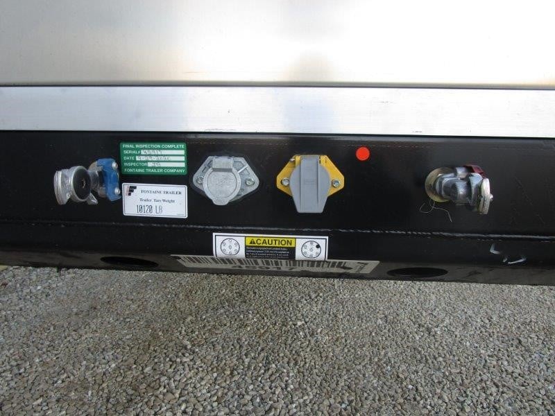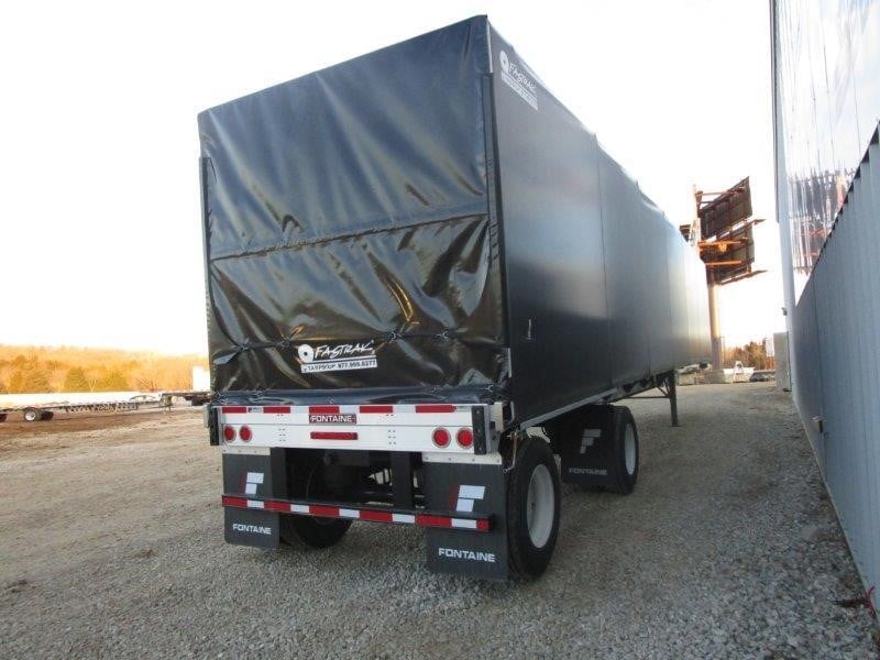 NEW Fontaine Infinity 48’ x 102” Combination Flatbed with Fastrak Sliding Tarp! Combination aluminum and steel construction, steel crossmembers on 12” centers, aluminum sides, rear and floor with (4) wood nail strips. King Pin set at 30”. 122” widespread air ride set to the rear with rear axle dump, Hendrickson AANT23K Intraax air ride suspension with 4S2M ABS, spring brakes, grease hubs with 5-year warranty. LED lights (3) per side and (2) per side on rear. One-piece RASR (Routed Aluminum Side Rails), Coil package, (15) recessed pop up chain ties, double L style winch track both sides, (12) sliding winches and hook retainers. 295/75R 22.5 tires on steel wheels. Forward and rear braced landing gear. 80,000 lb. frame rating with 55,000 lbs. in 4’. Trailer is outfitted with a Fastrak sliding tarp system. Black panelized tarp panels, skylights in every other tarp panel, quad lift bows to minimize tarp droop when operating, can be unlocked/locked at the front or the rear, crank handle style roll up rear door to give maximum door opening, 97” interior height, 5’ man door in bulkhead. Empty weight without tarp 10,180 lbs. +/- 3%. FOB Villa Ridge MO, Belle Vernon PA, and Haleyville AL.