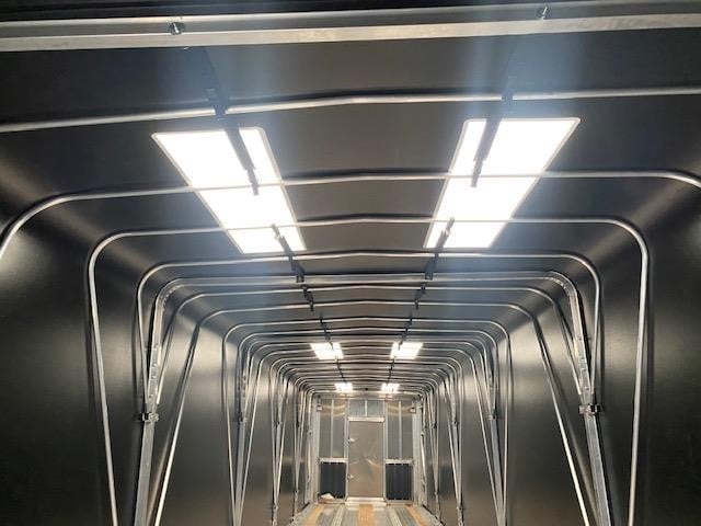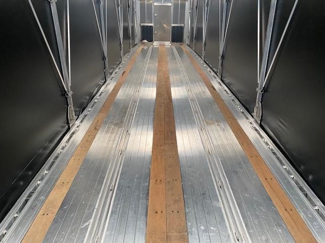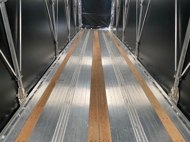 NEW Wabash (Formerly Benson) 48’ x 102” Aluminum Flatbed with Aero Tarp System! The trailer trusted for over 60 years as Benson now has a new name, Wabash! Aluminum construction, aluminum crossmembers on 16” centers, aluminum front, rear and floor with (3) Apitong wood nail strips. King pin set at 30”. 121” spread axle spacing, Hendrickson AAT23K air ride suspension with WABCO 2S1M ABS, semi-fluid grease bearings, Hendrickson 5-year warranty. LED lights (5) series 33 with TruckLite harness per side, (3) per side on rear. Coil package, Lock-Rite side rail with stake pockets on 24” centers, double pipe spools, double L style winch track with (12) sliding winches, aluminum air tank. 295/75R 22.5 LP tires on aluminum outside and steel inside wheels. Jost A420 landing gear. Trailer is outfitted with an Aero Conestoga XP sliding tarp system. Black panelized tarp panels, skylights in every other tarp panel, quad lift bows to minimize tarp droop when operating, can be unlocked/locked at the front or the rear, crank handle style roll up rear door to give maximum door opening, 6’ man door in bulkhead. 80,000 lb. GVWR with 52,000 lbs. in 4’ beam rating. Empty weight 8,770 lbs. +/- 3%. FOB Villa Ridge MO, Belle Vernon PA and Cadiz KY.