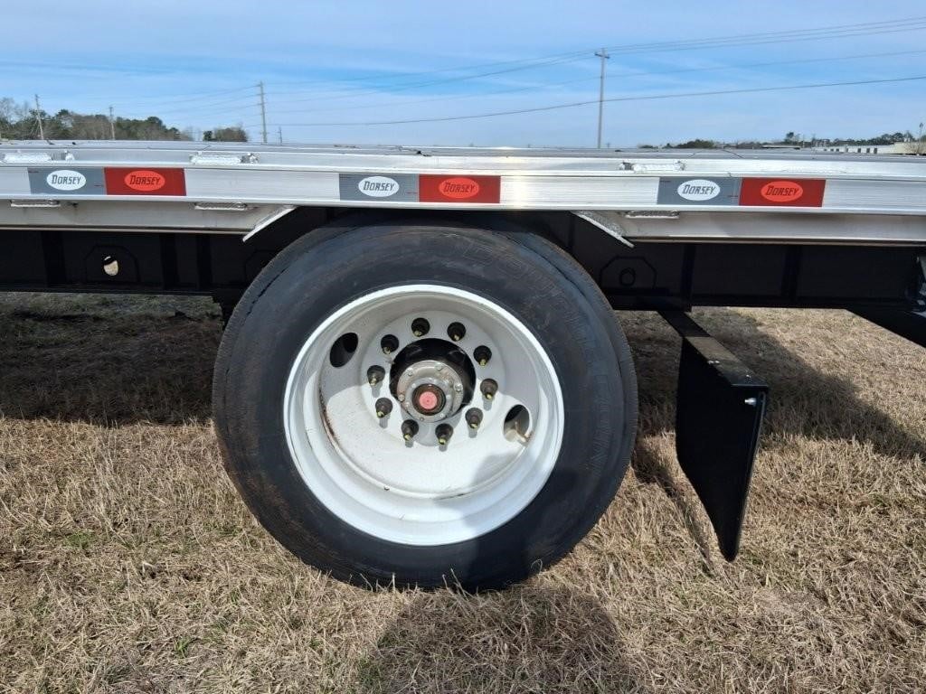 NEW Dorsey 53’ x 102” Combination Drop Deck with Rear Sliding Axle! Combination aluminum and steel construction, steel crossmembers and aluminum floor with (2) wood nail strips. King pin set at 30”. 122” axle spacing in open position, California/Canada legal in closed position, Hendrickson air ride suspension with 2S1M ABS. LED lights (3) per side, 3-3-3 pattern on rear. Coil package, stake pockets on 24” centers, aluminum side rail, winch track both sides, (12) sliding winches. 255/70R LP 22.5 tires on steel wheels. Jost A500 landing gear. 80,000 lb. GVWR with 60,000 lbs. in 10’ beam rating. Empty weight 11,680 lbs. +/- 3%. FOB Villa Ridge, MO and Belle Vernon, PA.