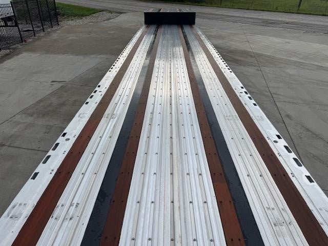 NEW Fontaine Infinity 53’ x 102” Combination Drop Deck Tri-Axle! Combination aluminum and steel construction, steel crossmembers on 18” centers at front deck and 12” centers on rear deck, aluminum sides, rear and floor with (4) wood nail strips. King Pin set at 30”. 61” axle spacing, electric rear axle dump and full manual suspension dump. Hendrickson AANL23K Intraax Air Ride Suspension with 4S2M ABS, spring brakes, grease hubs with 5-year warranty. LED lights (3) per side and (3) per side on rear. One-piece RASR (Routed Aluminum Side Rails), coil package, (17) recessed pop up chain ties, double L style winch track both sides, (12) sliding winches and hook retainers, spare tire carrier mounted at drop. 255/70R 22.5 tires on steel wheels. 100,000 lb. frame rating. Empty weight 12,635 lbs. +/- 3%. FOB Villa Ridge MO, Belle Vernon PA, and Haleyville AL.