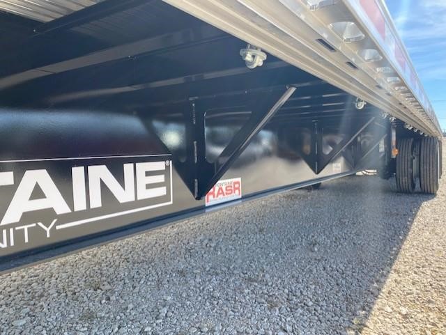 NEW Fontaine Infinity 53’ x 102” Combination Drop Deck with Rear Axle Slide! Combination aluminum and steel construction, steel crossmembers on 18” centers at front deck and 12” centers on rear deck, aluminum sides, rear and floor with (4) wood nail strips. King Pin set at 18”. 122” spread in open position, California legal in closed position with electric rear axle dump and full manual suspension dump. Hendrickson AANL23K and AAZL23K Intraax air ride suspension with 4S2M ABS, spring brakes, grease hubs with 5-year warranty. LED lights (3) per side and 3-3 pattern on rear. One-piece RASR (Routed Aluminum Side Rails), coil package, (17) recessed pop up chain ties, double L style winch track both sides, (12) sliding winches and hook retainers, spare tire carrier mounted at drop. 255/70R 22.5 tires on steel wheels. 80,000 lb. frame rating with 55,000 lbs. in 4’. Empty weight 11,516 lbs. +/- 3%. FOB Villa Ridge MO, Belle Vernon PA, and Haleyville AL.