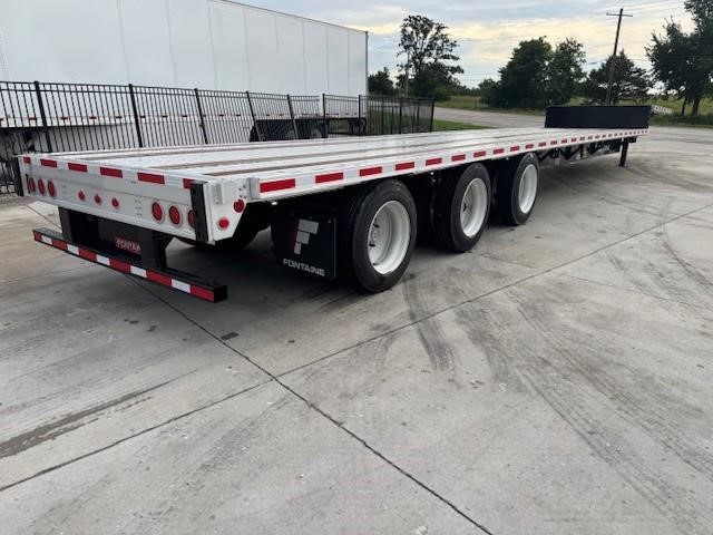 NEW Fontaine Infinity 53’ x 102” Combination Drop Deck Tri-Axle! Combination aluminum and steel construction, steel crossmembers on 18” centers at front deck and 12” centers on rear deck, aluminum sides, rear and floor with (4) wood nail strips. King Pin set at 30”. 61” axle spacing, electric rear axle dump and full manual suspension dump. Hendrickson AANL23K Intraax Air Ride Suspension with 4S2M ABS, spring brakes, grease hubs with 5-year warranty. LED lights (3) per side and (3) per side on rear. One-piece RASR (Routed Aluminum Side Rails), Coil package, (17) recessed pop up chain ties, double L style winch track both sides, (12) sliding winches and hook retainers, spare tire carrier mounted at drop. 255/70R 22.5 tires on steel wheels. 100,000 lb. frame rating. Empty weight 12,635 lbs. +/- 3%. FOB Villa Ridge MO, Belle Vernon PA, and Haleyville AL.